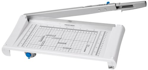 The New papermonster TG10 Duo Trimmer is an innovative and unique design concept that combines a mult-functional rotary paper trimmer and a guillotine trimmer in one handy space-saving unit. The Rotary trimmer side comes with three cutting options; straight, wavy and perforate. The guillotine trimmer side cuts up to 5 sheets of 20 lb. bond paper and has a safety latch on the side to lock the handle down or when flipped to the rotary side. The latch also serves as the handle trigger to pull the handle out for cutting.