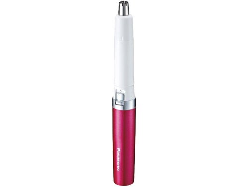 Panasonic "beauty" line facial hair trimmer, sleek wand design for portability, dual-edge blade, detachable and washable head for easy cleaning, operates on 1 "AAA" battery (not included) up to 72 minutes of operation, cleaning brush included, dimensions: 5.8inches height x .08 inches width x .08 inches diameter, 1.3 ounce, 2 year limited warranty parts/labor, pinkish-red.